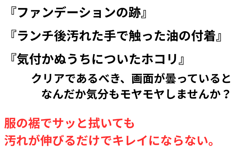 ◆ もう拭き跡に悩まない!画面に優しい高品質素材。スマホやパソコン画面に付いた汚れも綺麗に絡めとります。