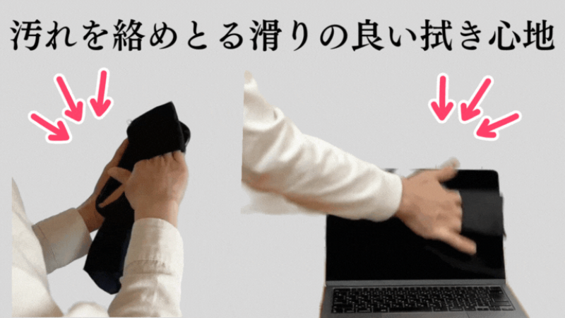 ◆頼れる実力派!市販のマイクロファイバー生地とは異なり指に纏わりつかない拭き心地の良さ