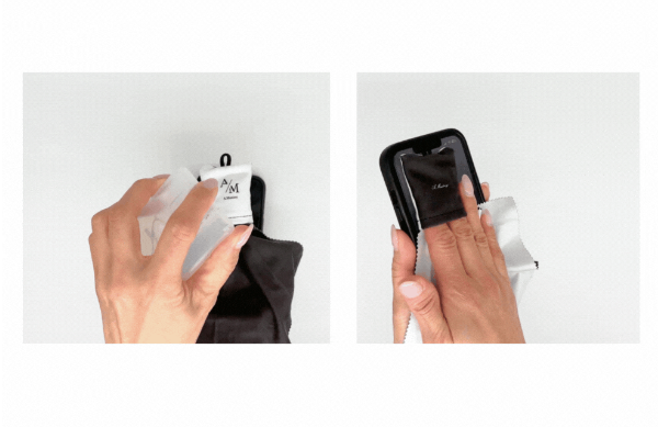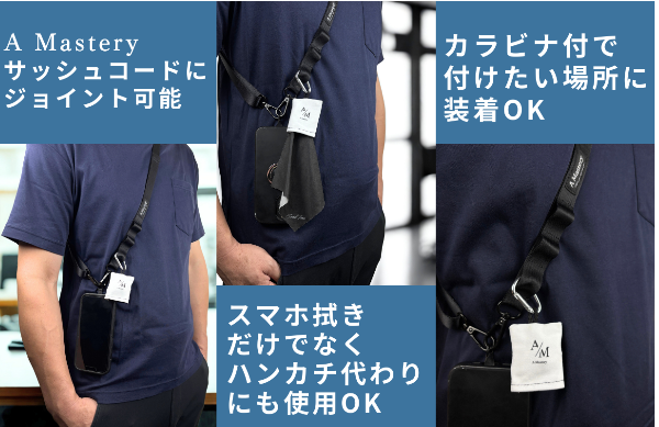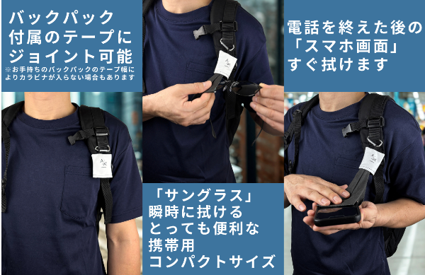 - カラビナ付でスマホに装着できるので、気になった瞬間に「サッ」と拭けて、清潔がいつもすぐそばに。