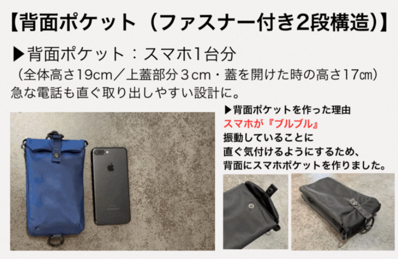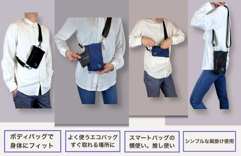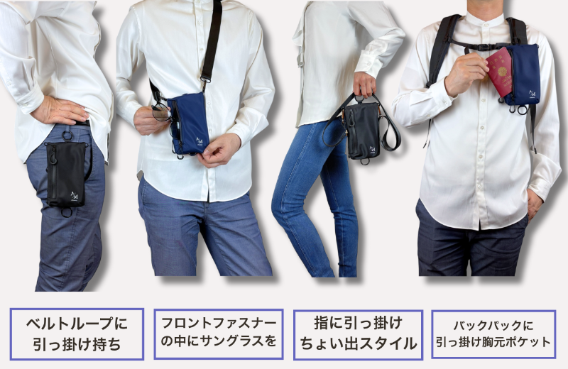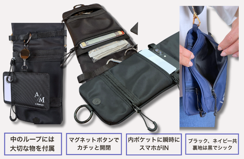 スマホを中心とした“動きやすさ”を追求。身軽に、自由に動けることを第一に考えた構造、肩紐のアレンジも自由。