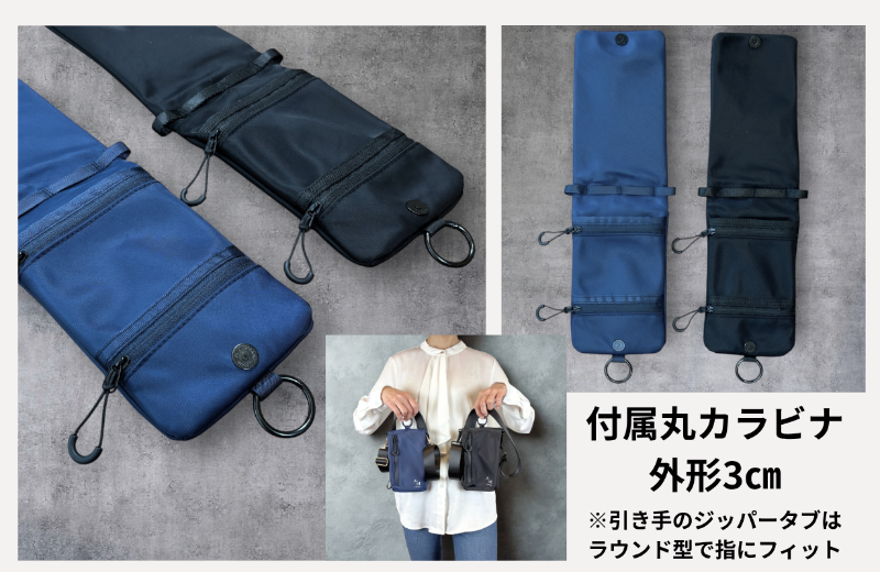 ショルダーストラップをはずすことで、丸カラビナを使用しお手持ちのバッグパックに装着も可。