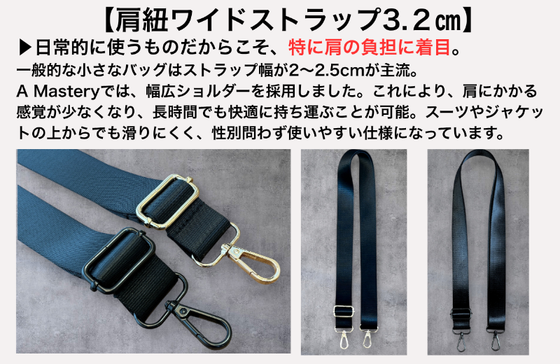 ※ストラップ幅が細いものがお好みの方には、A Masteryサッシュコードをジョイントしてもご利用になれます。