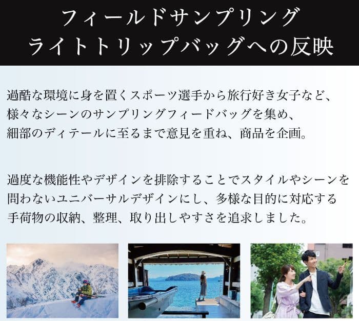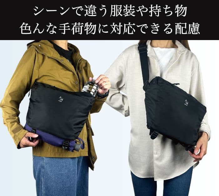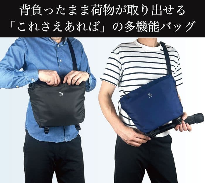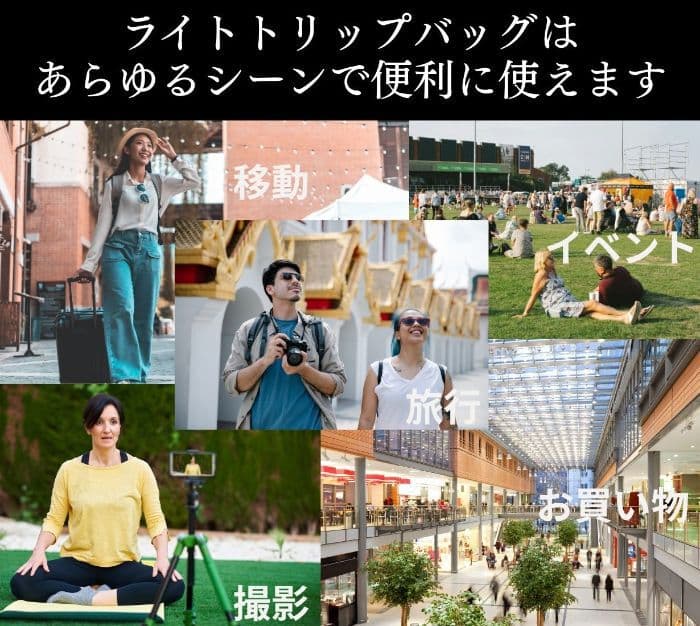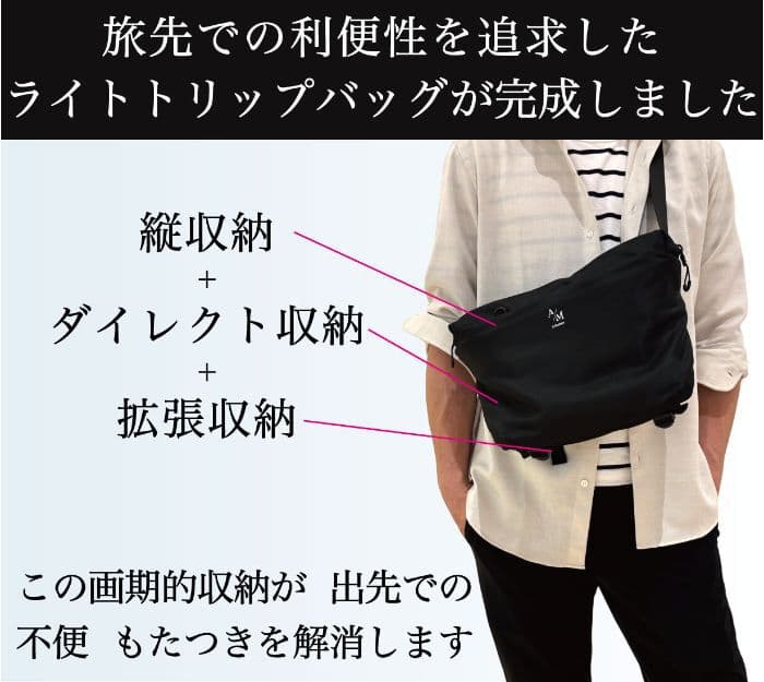 上着・傘・飲み物など旅先問題を解決する収納で両手フリーを実現するライトリ【ライトトリップバッグ】