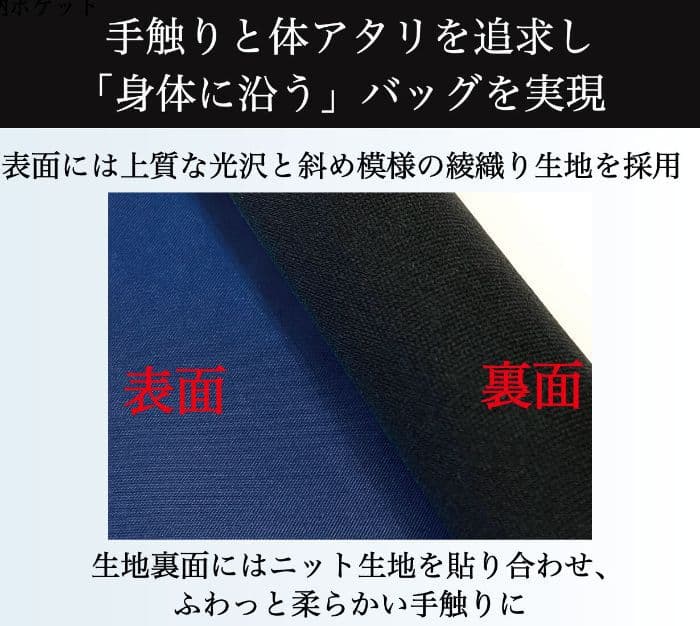 見た目、使いやすさ、身体アタリに配慮し、右利き、左利き、年齢問わず使える生地感、デザイン、軽さ