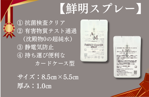 - 鮮明スプレーはプロ基準の検査済。クロスとの相乗効果でスマホもメガネも拭き心地が格別。