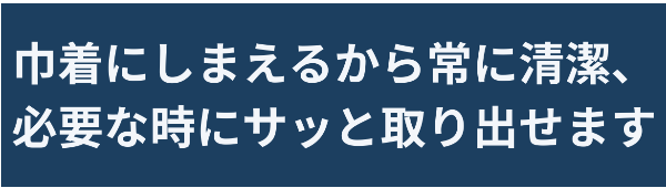 巾着にしまえるから常に清潔、必要な時にサッと取り出せます。