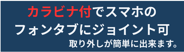 スマホに装着できるフォンタブやカラビナと組み合わせることで、携帯性はさらにアップ。日常はもちろん、旅行や外出先でも大活躍。