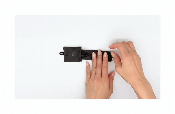 カラビナを外して巾着部分に指を入れると、よりしっかりと細かな汚れも拭き取れます。