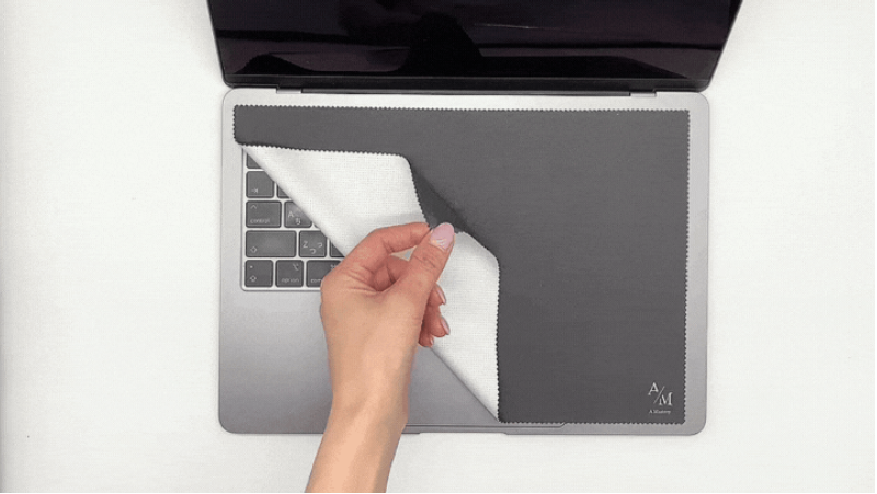 開け閉めするうちにモニターに付くキーボード跡やトラックパット跡から画面を保護。極薄クロスでPC収納可能。マウスパットとしても使えます。