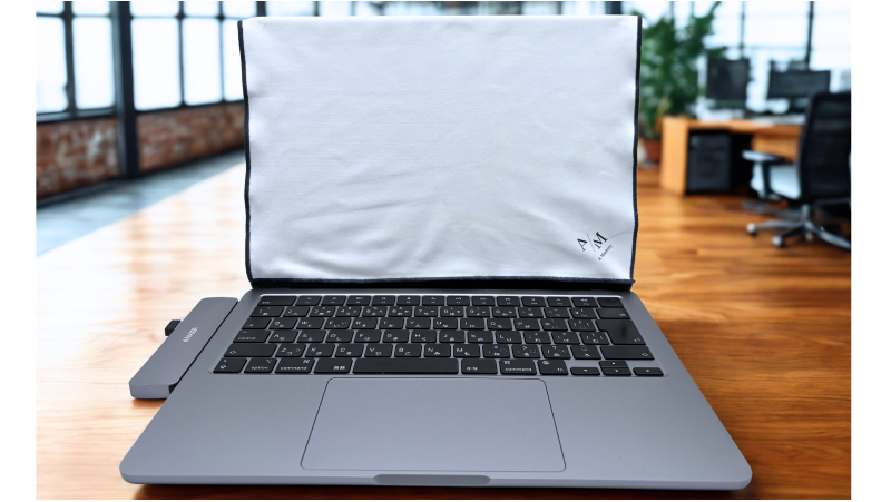 ノートPCの上に載せるだけで、キーボード跡やタッチ痕から画面を守り、開いた瞬間の視界が驚くほどクリアになります。